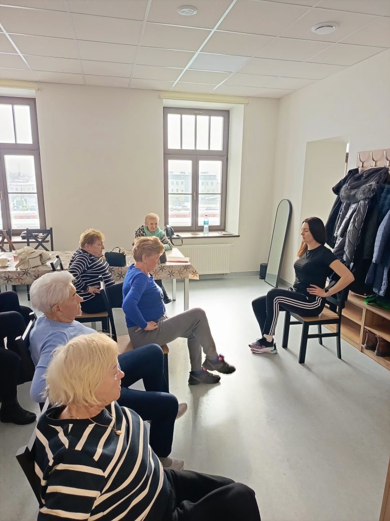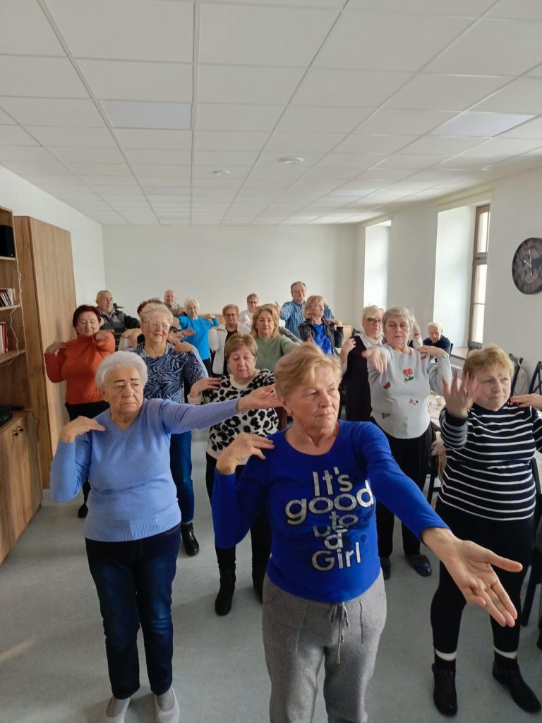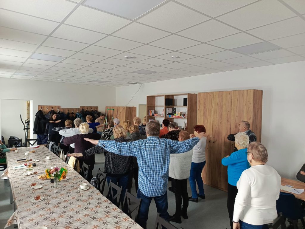 W nowo otwartym Klubie Seniora – Stacja Skarżysko odbyły się pierwsze zajęcia ruchowe dla seniorów, prowadzone pod okiem doświadczonego instruktora. Uczestnicy z dużym zaangażowaniem brali udział w ćwiczeniach, dbając o kondycję, zdrowie i dobre samopoczucie w miłej, przyjaznej atmosferze 💪😊