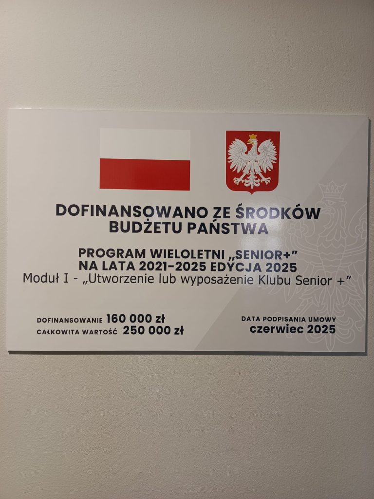 Przypominamy, że działalność Klubu Seniora jest dofinansowana ze środków budżetu państwa w ramach Programu Wieloletniego „Senior+”, co pozwala nam organizować różnorodne i wartościowe zajęcia dla osób starszych.